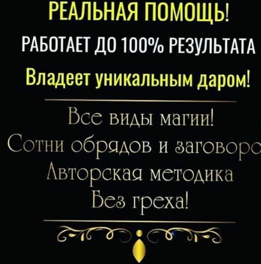 Были семейные проблемы, знаете даже с друзьями посоветоваться не могла, стыдно. Тут анонимом поэтому опишу вкратце. Я замужем уже 7 лет, и тут к нам устроился новый коллега на работу, у меня как закружилась голова, я с ума от него сошла. И было с ним хорошо и плохо одновременно, я понимала что это плохо изменять своему мужу, но это было какое то затмение, меня тянуло и тянуло к нему, просто как зависимая стала. Именно тогда я поняла что мне нужна помощь, не знала еще какую, но она мне нужна была, ведь мужа я все равно люблю (не осуждайте) Даже у психолога была, но результат был просто нулевой. Тогда я стала искать помощь у знахарок и ясновидящих. Обошла наверное весь Нью Йорк пока не наткнулась именно тут, в Русской Рекламе на Екатерину, и именно она меня спасла!!!!!!! Екатерина спасла мой брак, я отшвырнула того кавалера с легкостью. Это что то нереальное, но это было со мной и я знаю что работа Екатерины идеально мне подошла. Слов не хватит отблагодарить Екатерину. Дай Бог Вам удачи! *